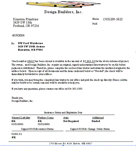subcontract and change order information on the cover letter of the waiver. subcontract requirement and change order from one screen that is equipped with a spell checker and an undo button.